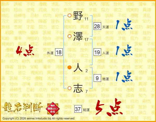 野澤人志さんの総運は37画の5点!