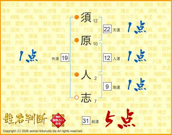 須原人志さんの天運は22画の1点!