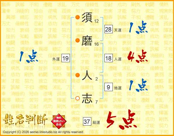 須磨人志さんの総運は37画の5点!