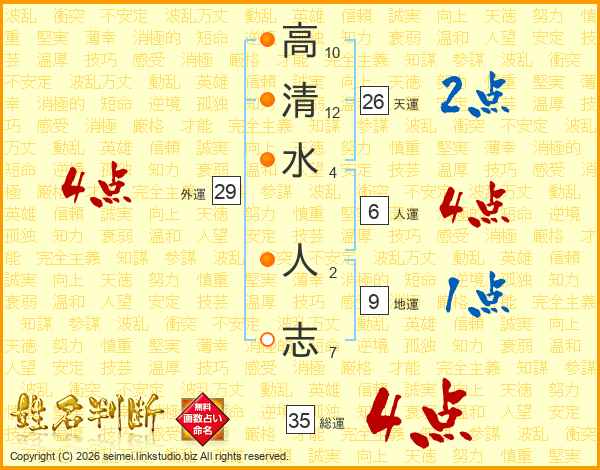 高清水人志さんの総運は35画の4点!