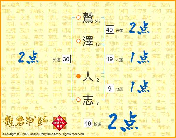 鷲澤人志さんの総運は49画の2点!