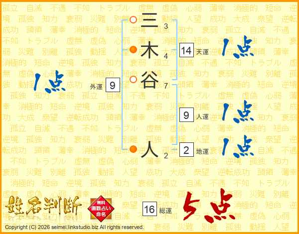 三木谷人さんの総運は16画の5点!