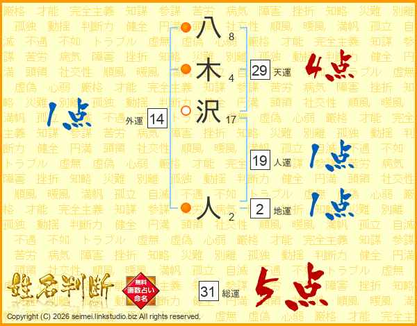 八木沢人さんの総運は31画の5点!