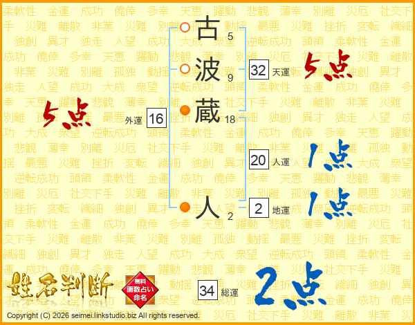 古(5画)波(9画)蔵(18画) 人(2画)