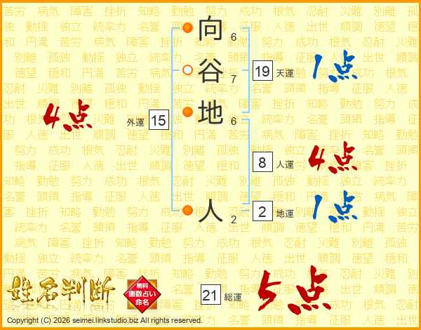 向谷地人さんの総運は21画の5点!
