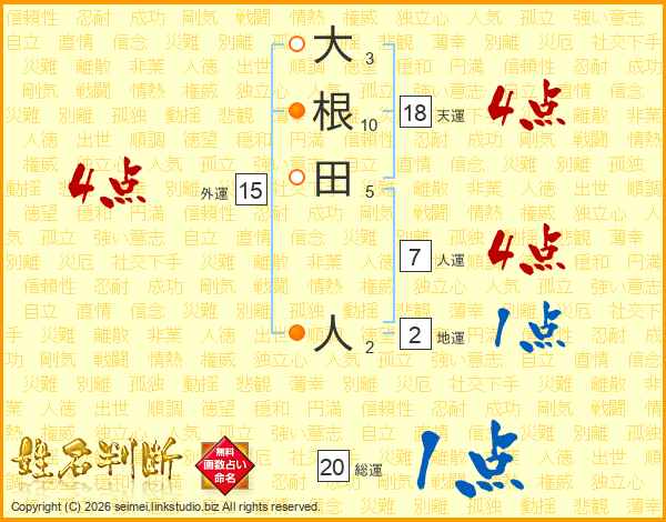 大根田人さんの人運は7画の4点!