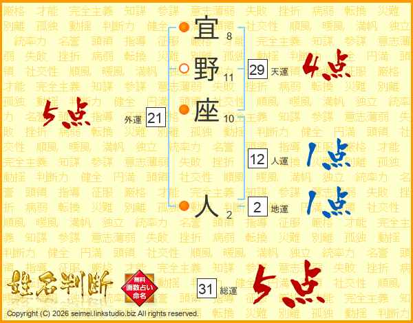 宜野座人さんの総運は31画の5点!