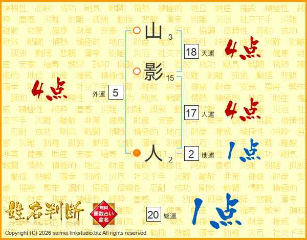 山影人さんの天運は18画の4点!
