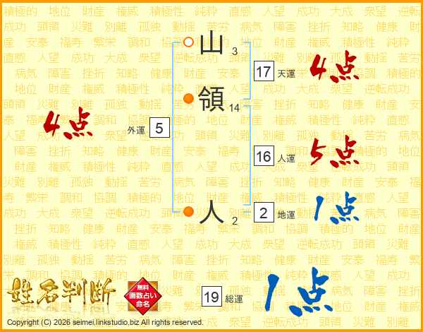 山領人さんの総運は19画の1点!