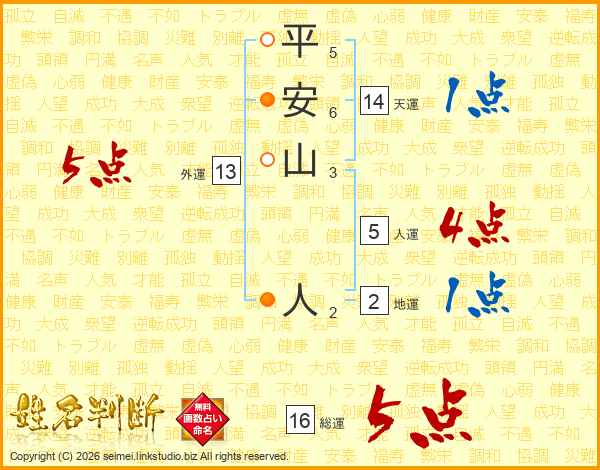 平安山人さんの総運は16画の5点!