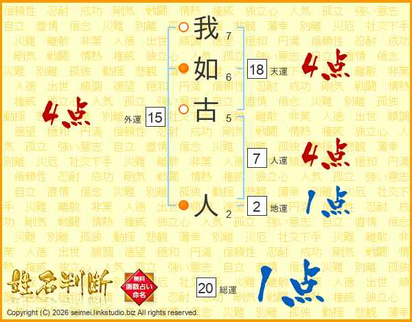 我如古人さんの総運は20画の1点!