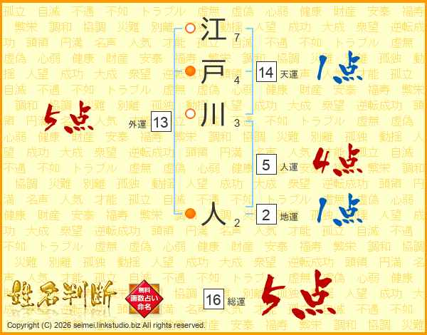 江戸川人さんの総運は16画の5点!