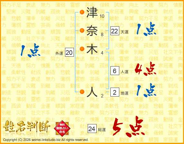 津奈木人さんの総運は24画の5点!
