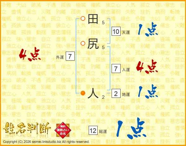 田尻人さんの総運は12画の1点!