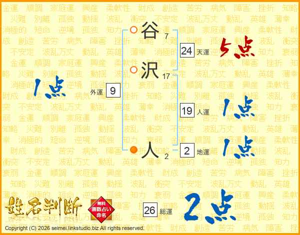 谷沢人さんの総運は26画の2点!