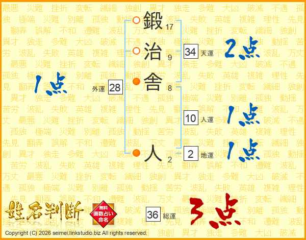 鍛治舎人さんの総運は36画の3点!