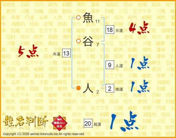 魚谷人さんの総運は20画の1点!