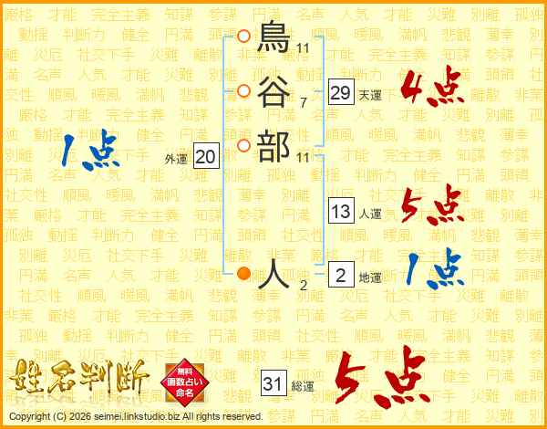 鳥(11画)谷(7画)部(11画) 人(2画)