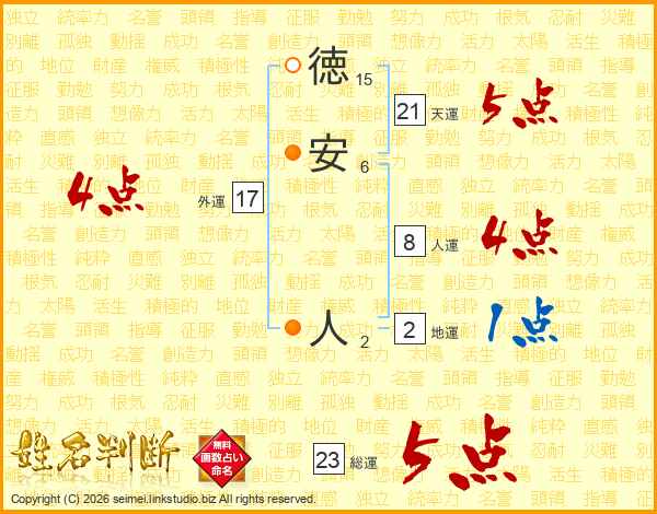 徳安人さんの総運は23画の5点!