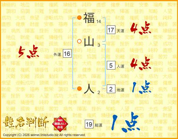 福山人さんの総運は19画の1点!
