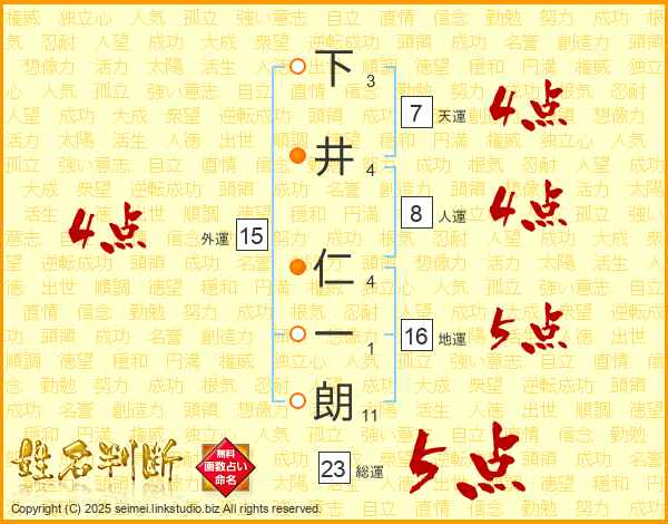 下井仁一朗さんの総運は23画の5点!