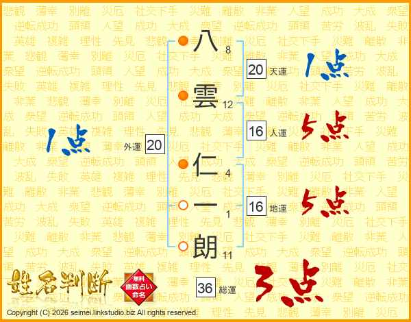 八雲仁一朗さんの総運は36画の3点!
