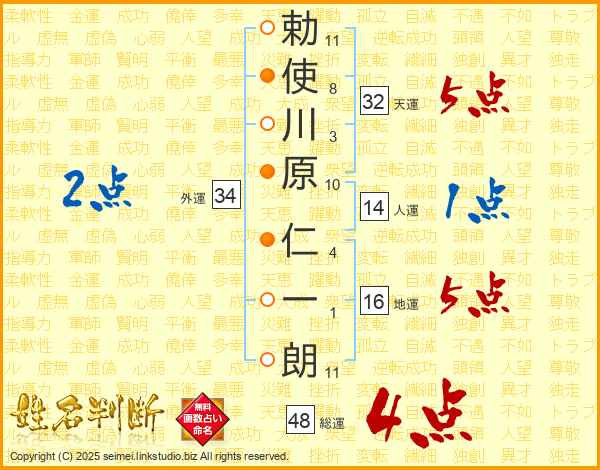 勅使川原仁一朗さんの総運は48画の4点!