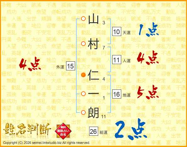 山村仁一朗さんの人運は11画の4点!
