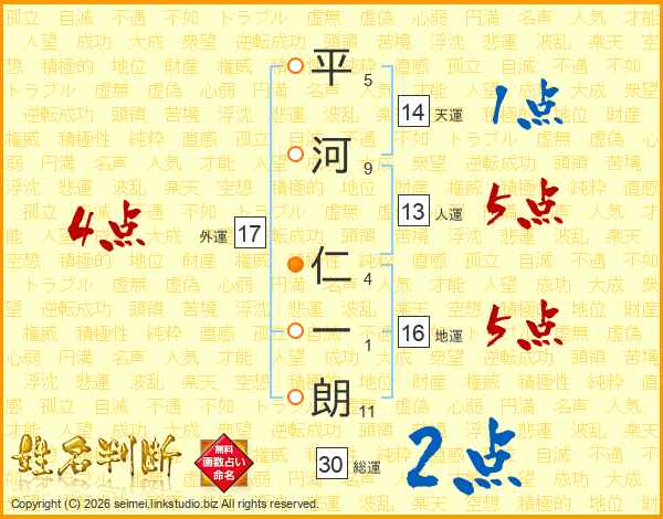 平河仁一朗さんの人運は13画の5点!