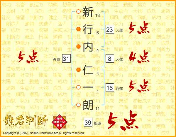 新(13画)行(6画)内(4画) 仁(4画)一(1画)朗(11画)