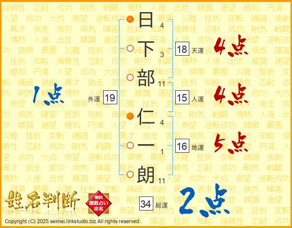 日下部仁一朗さんの人運は15画の4点!