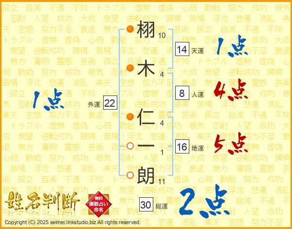 栩(10画)木(4画) 仁(4画)一(1画)朗(11画)