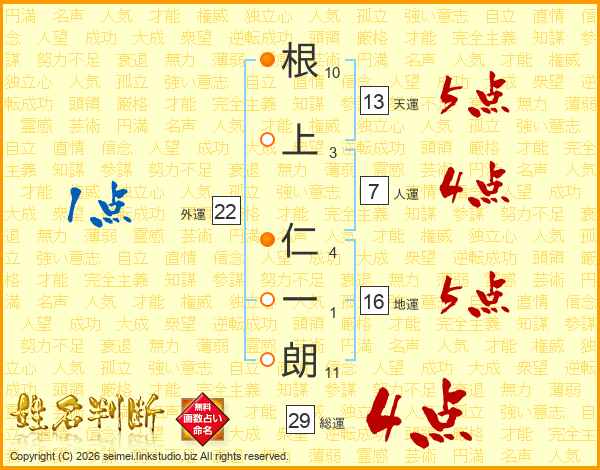 根上仁一朗さんの総運は29画の4点!