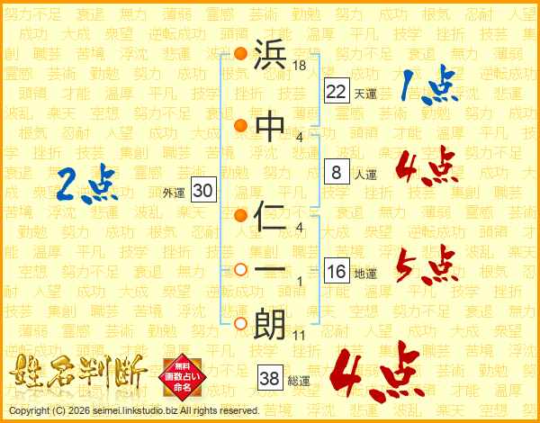 浜中仁一朗さんの総運は38画の4点!