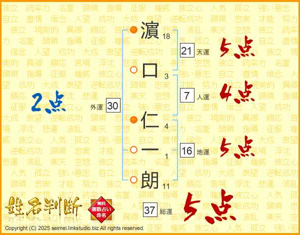 濵(18画)口(3画) 仁(4画)一(1画)朗(11画)