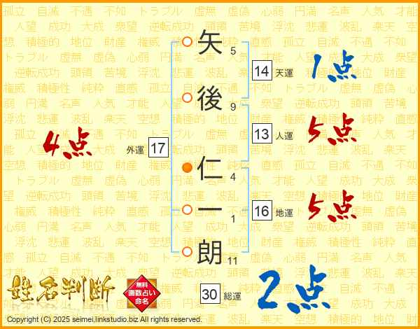 矢後仁一朗さんの総運は30画の2点!