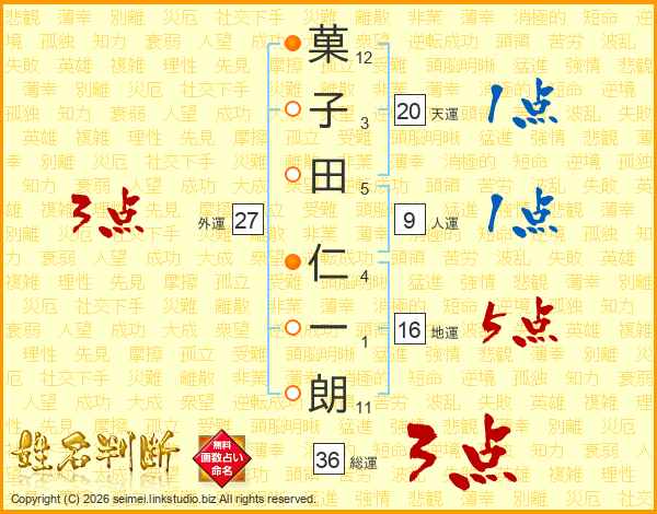 菓子田仁一朗さんの総運は36画の3点!