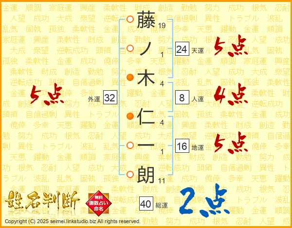 藤(19画)ノ(1画)木(4画) 仁(4画)一(1画)朗(11画)