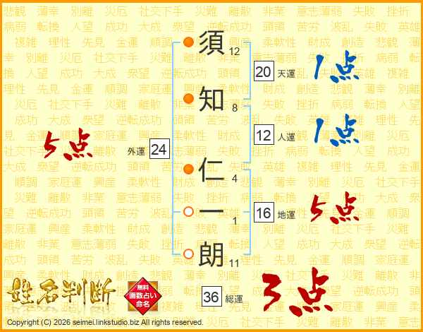 須知仁一朗さんの総運は36画の3点!