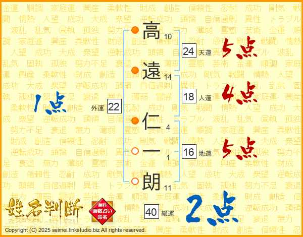 高遠仁一朗さんの総運は40画の2点!