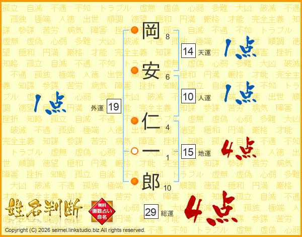 岡安仁一郎さんの総運は29画の4点!