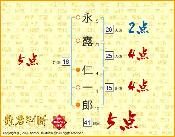 永(5画)露(21画) 仁(4画)一(1画)郎(10画)