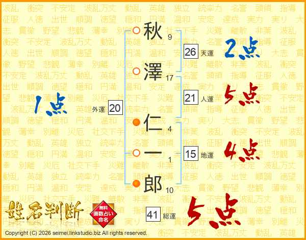 秋澤仁一郎さんの総運は41画の5点!
