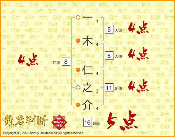 一(1画)木(4画) 仁(4画)之(3画)介(4画)