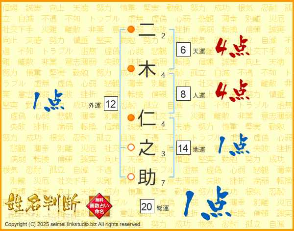 二木仁之助さんの総運は20画の1点!