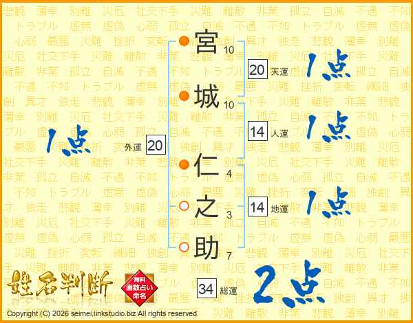 宮城仁之助さんの総運は34画の2点!
