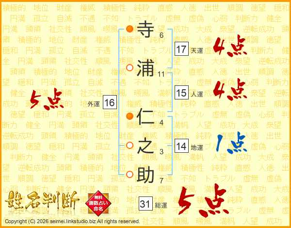 寺(6画)浦(11画) 仁(4画)之(3画)助(7画)