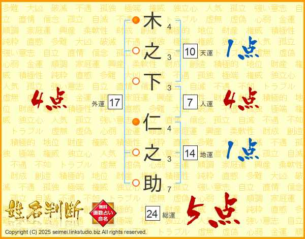木(4画)之(3画)下(3画) 仁(4画)之(3画)助(7画)