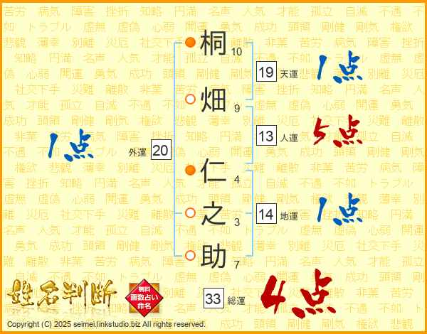 桐(10画)畑(9画) 仁(4画)之(3画)助(7画)