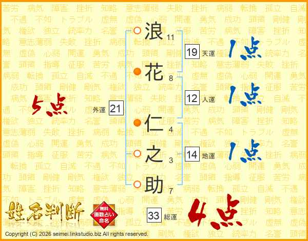 浪花仁之助さんの外運は21画の5点!
